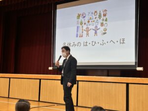 続いて指導部からは、冬休みの過ごし方について「冬休みのはひふへほ」のお話がありました。
