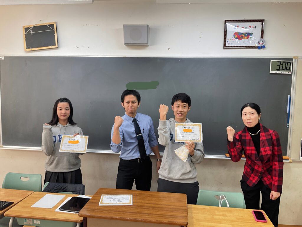 「朝学!全集中!」表彰生徒のみなさん。早起きと学習への取り組みをやり抜いた姿、とても立派でした!