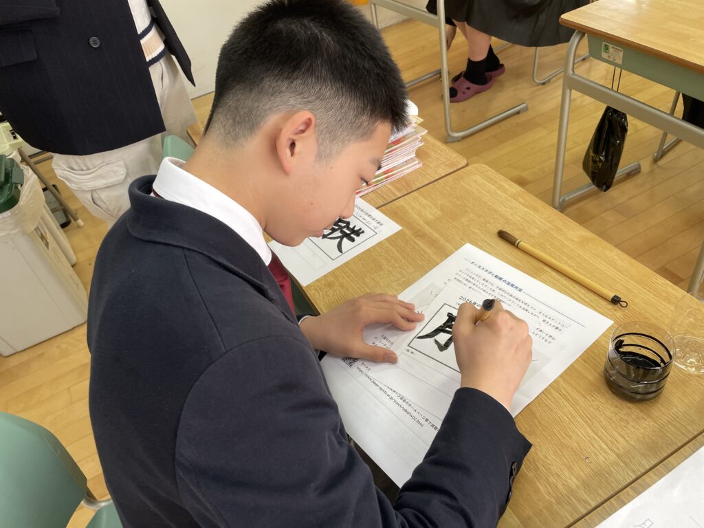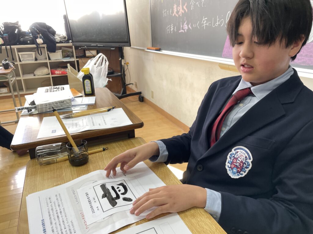 余裕のある生徒は、書き初めのように丁寧に仕上げる姿も見られ、それぞれが自分自身と向き合いながら、静かに新年の目標を心に刻んでいました。