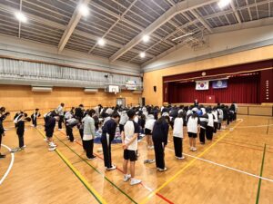 本日、1時間目に全校朝礼を行いました。