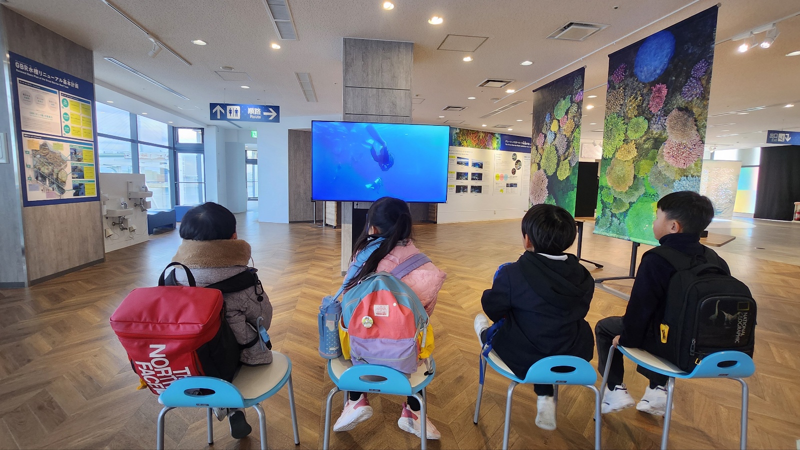 多種多様な海の生き物の生活の様子や、自分の体よりも大きな魚を見て1年生たちは大喜びでした。