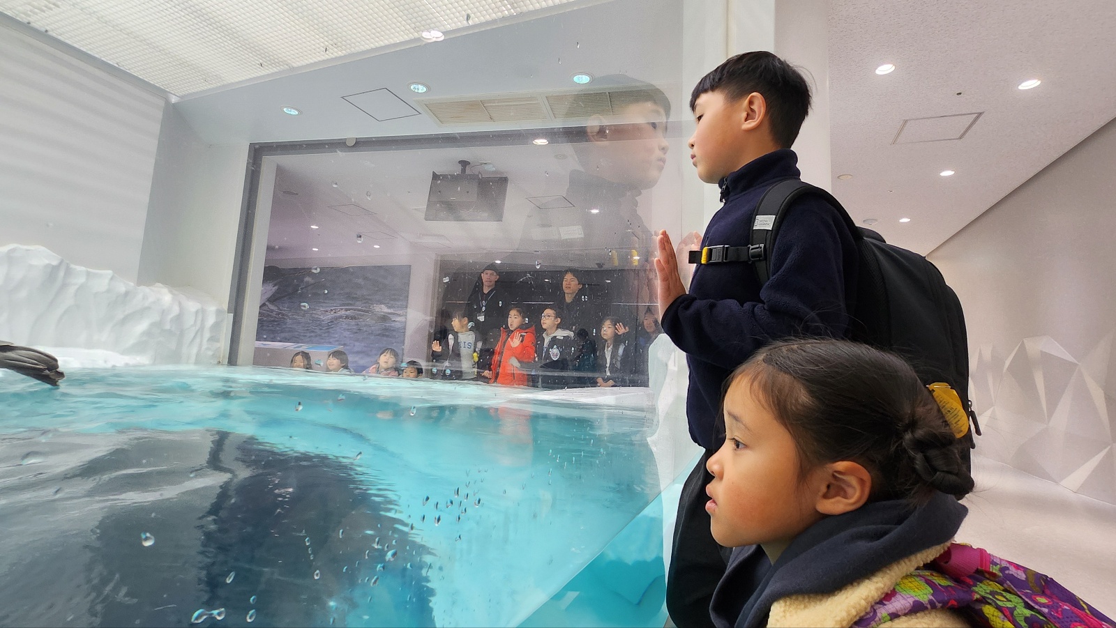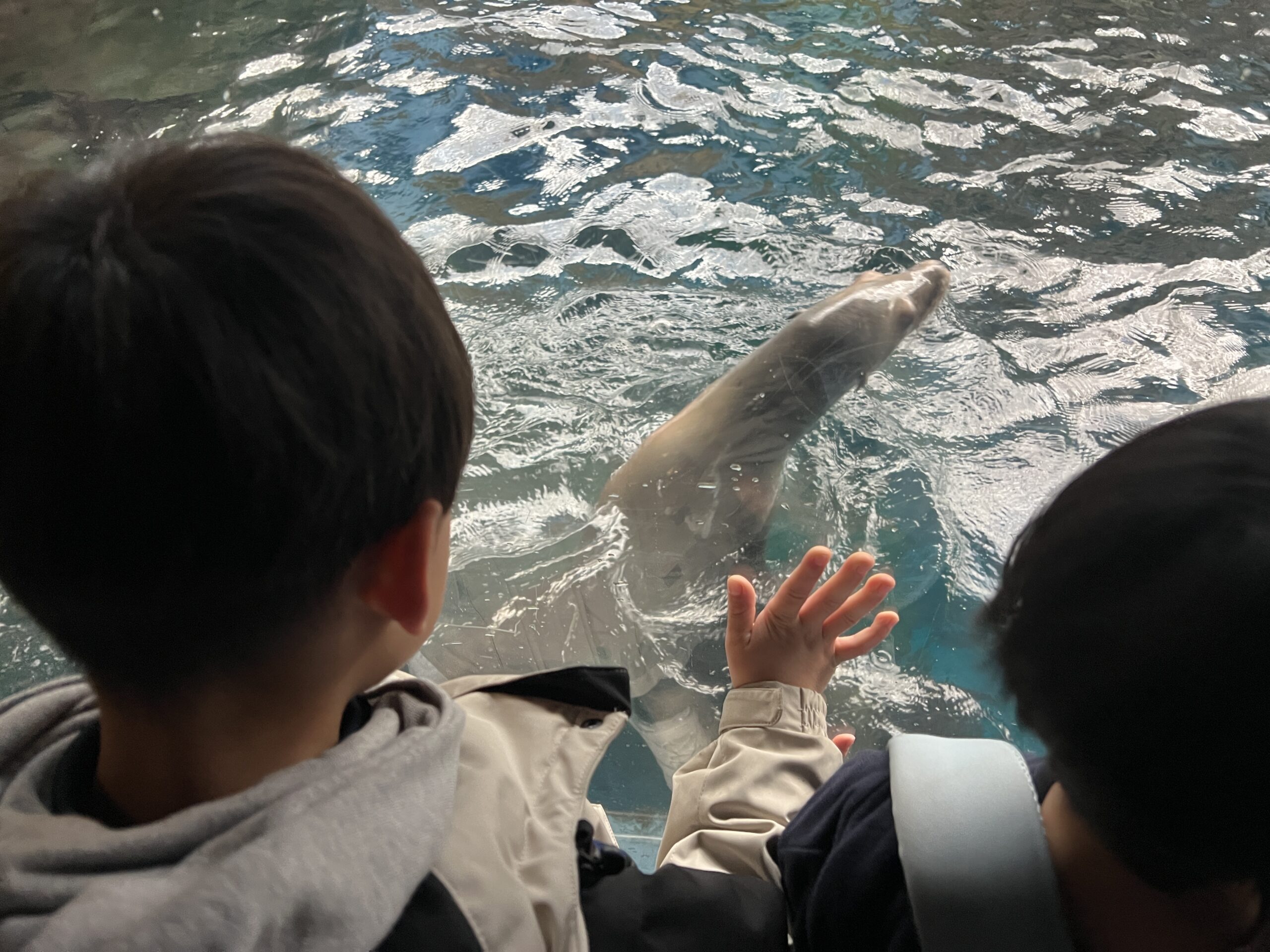 多種多様な海の生き物の生活の様子や、自分の体よりも大きな魚を見て1年生たちは大喜びでした。