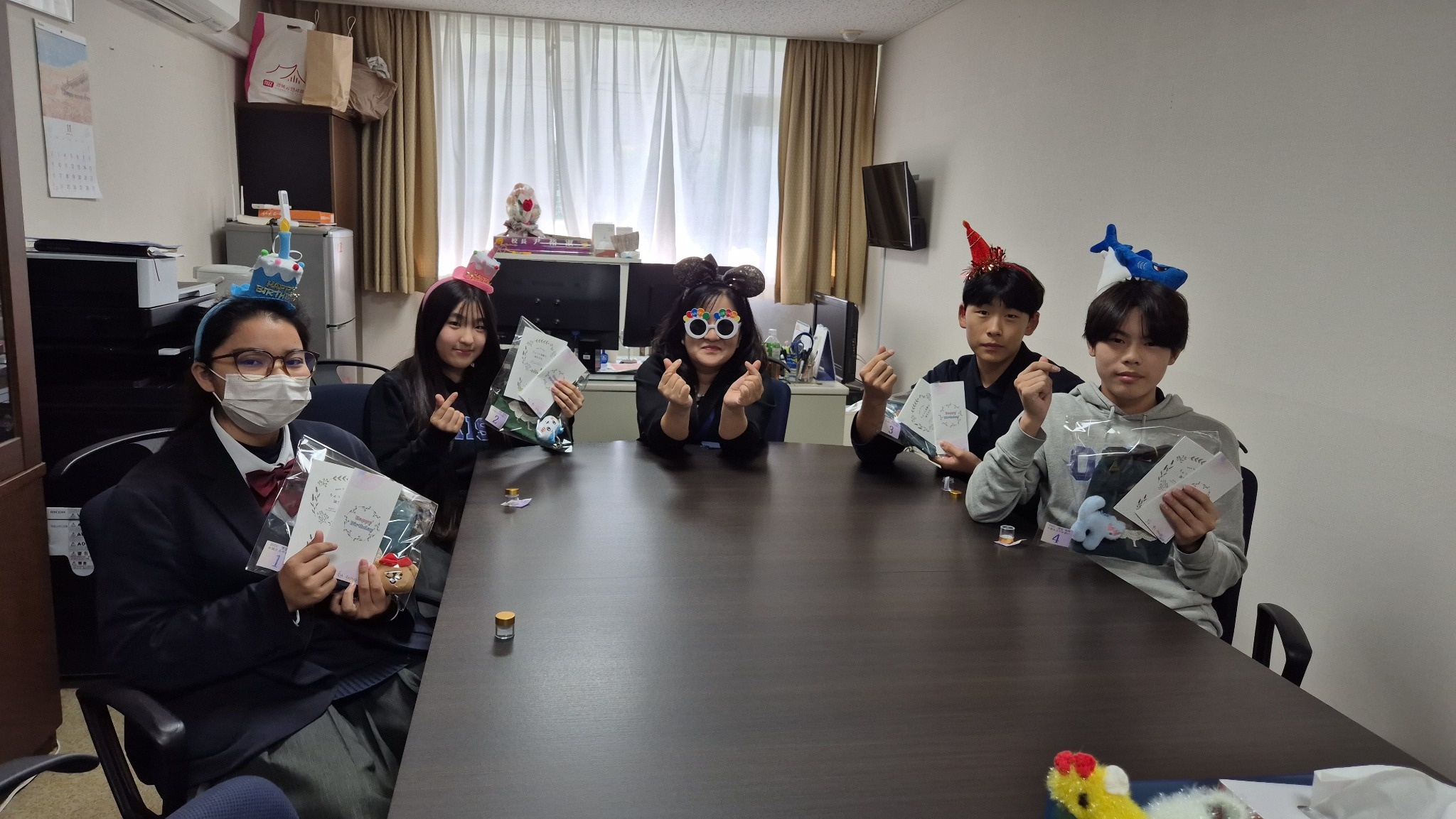 10月にお誕生日を迎えた生徒たちをお祝いしました。 理事長と校長先生がプレゼントをくれました。