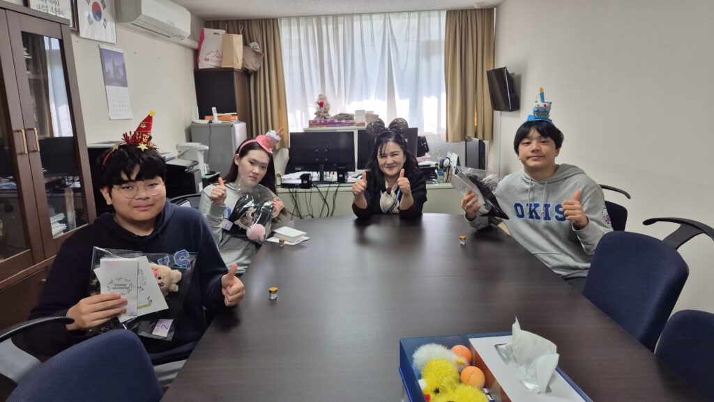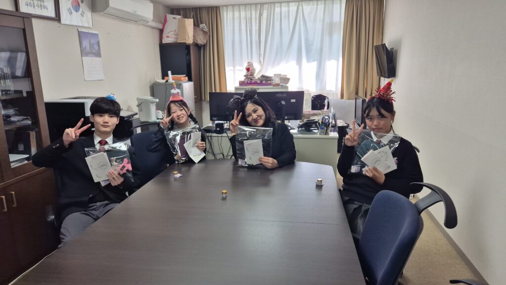 12月にお誕生日を迎えた生徒たちをお祝いしました。理事長と校長先生がプレゼントをくれました。