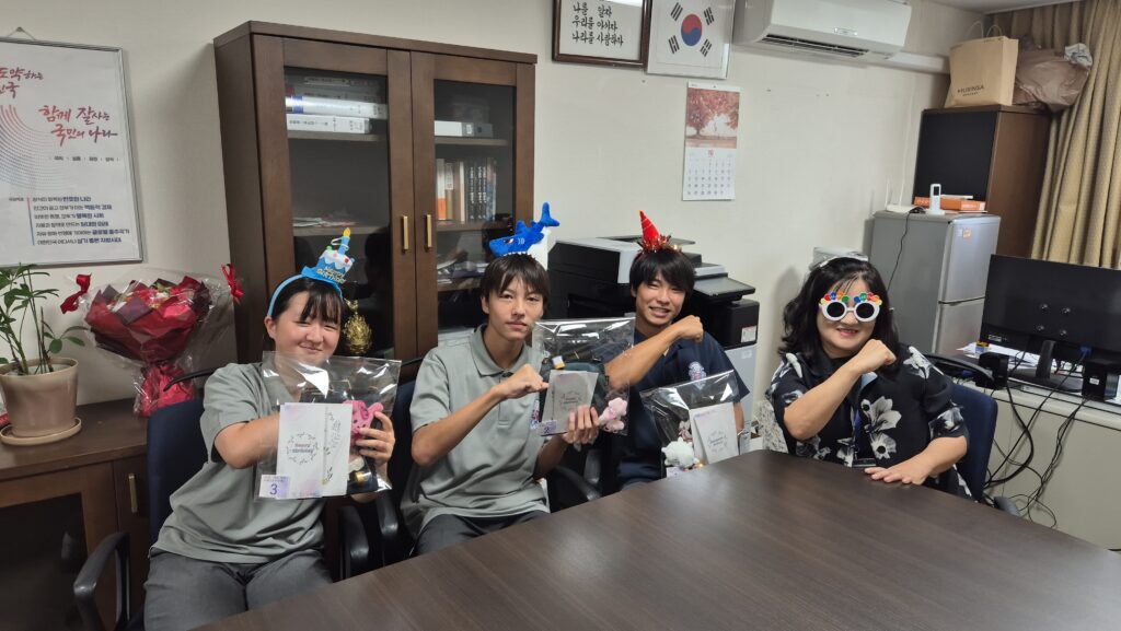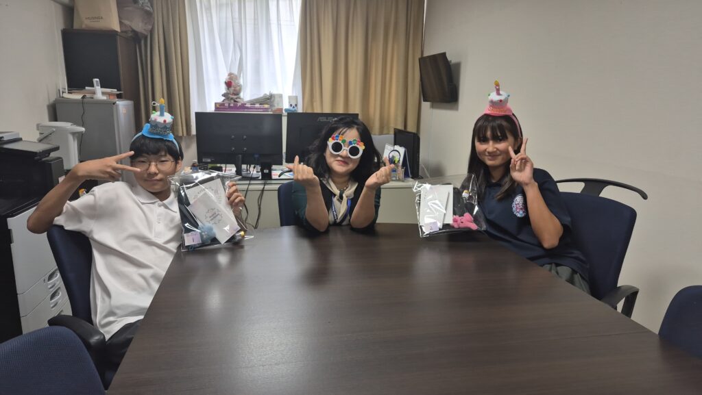 8, 9月にお誕生日を迎えた生徒たちをお祝いしました。理事長と校長先生がプレゼントをくれました。