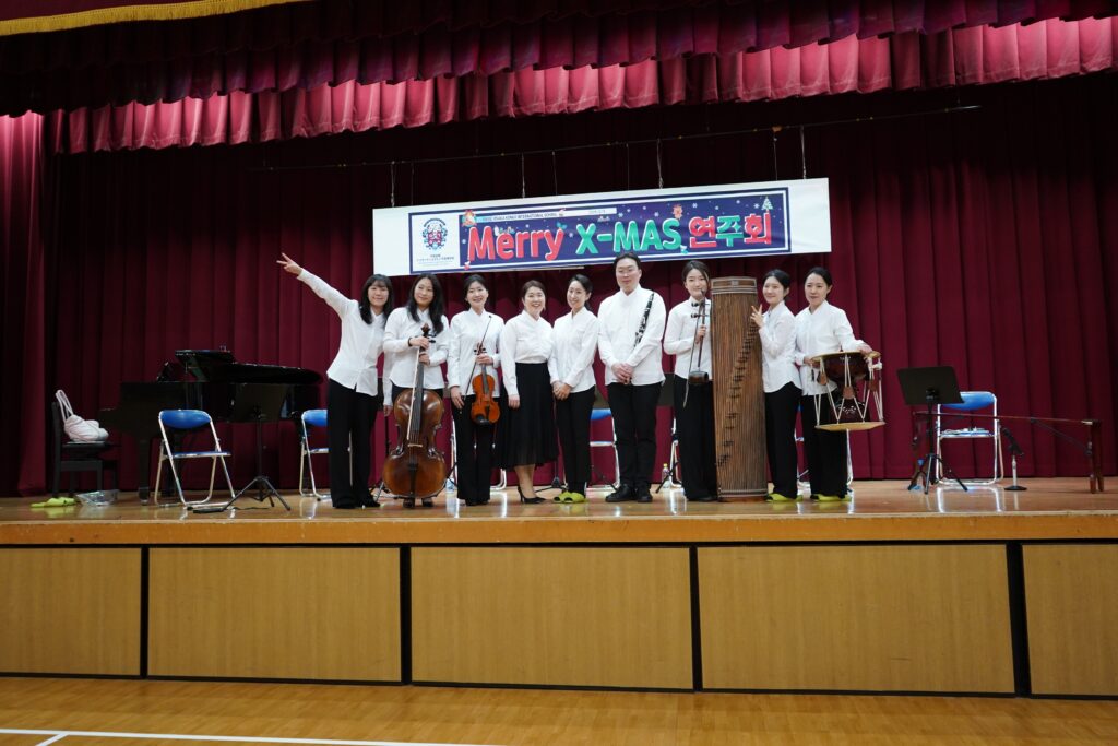 曲が終わるたびに大きな拍手が響き渡り、最後にはアンコールの声が上がるなど、児童・生徒たちの音楽を楽しむ姿がとても印象的でした。Ncal財団の皆さまによる温かい演奏は、子どもたちにとって今年のクリスマスシーズンの素敵な思い出となりました。