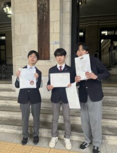 4月6日、春の自転車交通安全キャンペーンが開催され、本校から生徒会3名が参加しました。