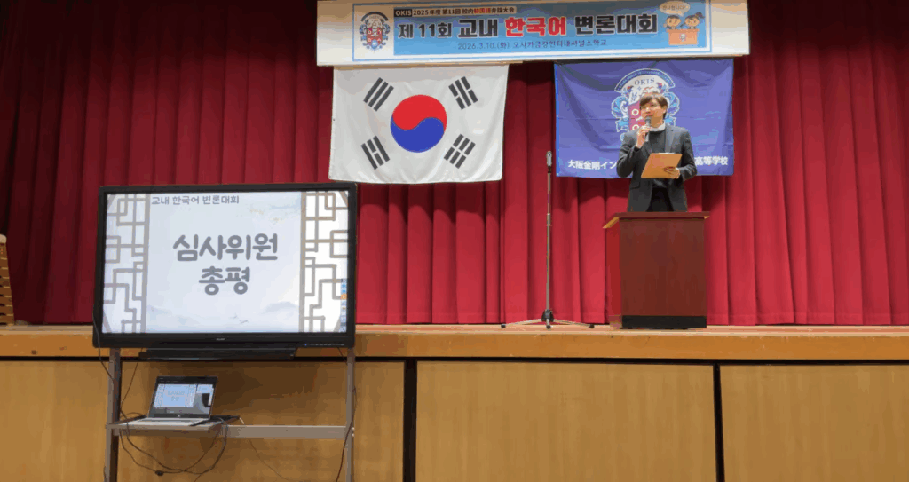 오사카금강인터내셔널소학교의 교내 한국어 변론대회는 학생들이 직접 원고를 작성하고 이를 암기하여, 한국어의 다양한 표현을 활용해 발표하는 행사입니다.
