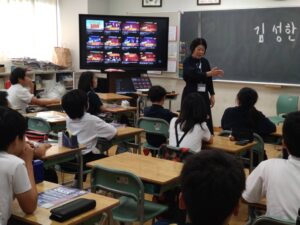 아이들은 그동안 배운 어학 실력을 활용할 수 있는 중학생만의 다양한 행사 이야기에 눈을 반짝이며 귀 기울여 들었답니다.