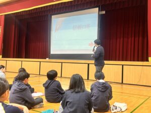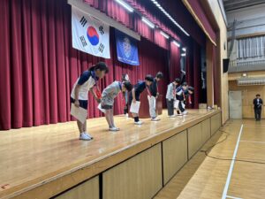 오늘 1교시에 전교생 아침 조회를 실시했습니다.