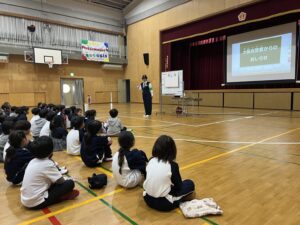 12월 2일, 스미노에 경찰서에서 오셔서 초등학교 1~4학년을 대상으로 방범 교실을 실시했습니다.